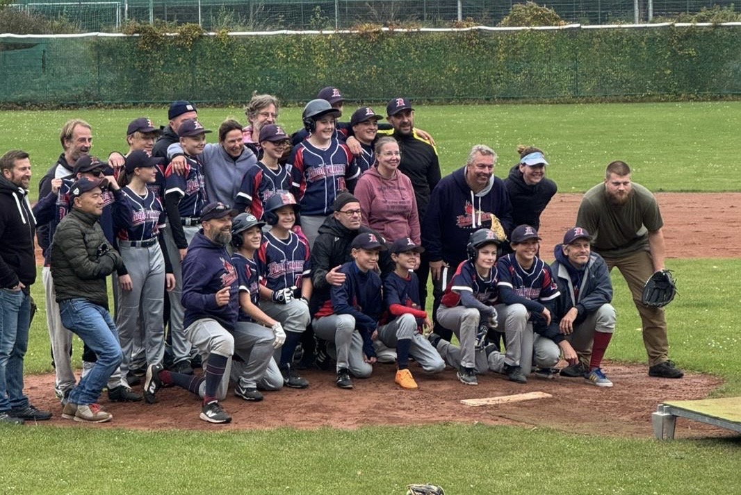 Ein ganz, ganz knappes Ding war es am Ende: Zweite Hälfte des fünften Innings, Bases loaded, das Jugendaufbau-Team liegt mit 7:10 hinten, und hat auch schon zwei Outs. Ein verwertbarer Grounder direkt zum zweiten Base und die Sensation wäre perfekt! Aber oh weh: Der Ball rutscht durch, zwei Runs kommen rein und einen weiteren Hit später traben die Nachwuchs-Roadrunner mit einem 11:10 Walk-off vom Feld. 13 Eltern waren gekommen, um bei trübem Mitte-Oktober-Wetter gegen ihre Söhne und Töchter anzutreten - und durften selbst erleben, was ihren Nachwuchs an dem Sport mit Handschuh und Keule so fasziniert. Beim abschließenden Pizza-Essen im Dug-out (Dank an unseren Sponsor Dominos) wurden natürlich einzelne Spielzüge ganz besonders hitzig diskutiert. Viel Spaß hatten dabei nicht nur Teilnehmenden, sondern auch die Coaches, die gesehen haben: In der Saison ist ein toller Haufen zusammengewachsen. Und auch wenn Lukas, Thijn und Tom jetzt eine Altersstufe weiter zu den Junioren hochrutschen, ist noch viel Potenzial für die kommende Saison da!